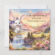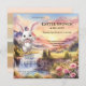 Cute Påsk brunch och äggjaktinbjudan med en pastelllandskapsmålning med en lycklig-fantasi-örn att åka till party. På baksidan finns en elegant-stripe-design.