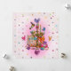 All cute pastel coquette with a tea party setting, tea cups, pastries, candle drum, bird, cat, butterfly, bee, dragonfly, cute things and etc