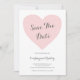 Spara datumkortet med en enkel design med "Spara datum" i en visuell typografi inuti ett pastellhjärta i rosan. Baksidan är en matchande skugga av rosa. Ett modernt utkast för att tillkännage datumet för ert kommande bröllop.