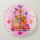All cute pastel coquette with a tea party setting, tea cups, pastries, candle drum, bird, cat, butterfly, bee, dragonfly, cute things and etc