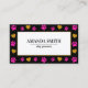 Cute Paw Prints Heart Dog Groomer Business Card features a black front with pink paw, heart gold print design and fully customizable text.