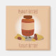 Magnet med en illustrerad utformning av ett leende jordnötssmör burk som står mellan två jordnötspilar. Orden "jordnötssmör? Peanut Better!" show ovanför och under tecknade figurer. Hela ord kan anpassas.