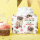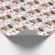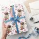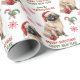 Det upprepade mönster på detta papper om julomslag innehåller en bild av en ynklig liten Pekingesisk hund som bär en röd julhatt med ett stulet träd-prydnadsföremål bredvid honom. Röd text och grönt säger GOD JUL" och "Gott nytt år" med anpassningsbarna namnteckning nedan. Andra bilder som ingår i mönster är rött dekorativt snöflingor och polkagrisar.