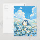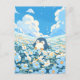 Brighten your correspondence with this heart-melting scene of a sweet, chubby penguin nestled among a sea of soft blue and white blossoms. The digital illustration is rendered in a gentle, painterly aesthetic, featuring a soothing palette of sky blue, creamy white, and sunny yellow centers. Against a brilliant azure sky, towering and fluffy white clouds create a whimsical, airy atmosphere. The penguin’s gentle expression and the delicate floral textures evoke a sense of peaceful springtime joy. This postcard serves as a beautiful canvas for a heartfelt handwritten message or a serene mini-print to accent your workspace gallery wall. Whether it’s traveling through the mail to a loved one or pinned to your inspiration board, it brings a touch of calm to any setting.