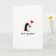 This sweet card shows a cute penguin standing on a plain white background, keeping the focus on a sweet moment. The penguin is black and white with a yellow-orange beak and matching webbed feet. It holds a bright red, heart-shaped balloon on a thin stick, and the penguin’s calm, gentle expression makes the scene feel caring. The simple setting makes the heart balloon stand out as the main sign of love and closeness ❤️. Near the bottom, the words “you’re my penguin” appear in a casual handwritten in black, centered under the penguin.