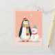 Cute Penguin med Snögubbe Pastel Rosa jul Vykort
