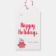 En söt märkre för julklappar med en vacker penguin-illustration i svartvitt, rött och vitt, och Glad helg i rött penselerat stil-teckensnitt. Hälsning kan ändras. Anpassa med ditt namn i modern sans serif typsnitt. Baksidan är i festiv röd.