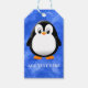 Cute Penguin Tecknad Anpassningsbar Blue Watercolo Presentetikett
