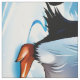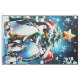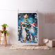 Cute penguins i en helig tecknad stil, som alla bär festliga tomater. De står runt ett magnifikt dekorerat Julgran, dekorerat med färgstarka ornament i olika former och storlekar. En stor guldstjärna lyser överst i träd, ge hela bilden med en feg glöd. Den här designen fångar julens innersta väsen på ett lekfullt sätt och förmedlar en känsla av värme, glädje och gemenskap i mitten i ett vintridslandskap.