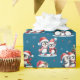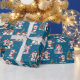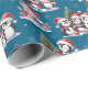 Denna blåa julomslutning pappra har en roligt mönster av pingviner i rödtomten som firar vinterhelgdagar. Lustigt pingviner dekorerar Julgranar, träffar familj och vänner och isskal, så den här designen är perfekt för festskrapor. Mönster ligger på en blå bakgrund.