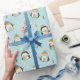 Cute Penguins med liten träd på ljusblå Presentpapper
