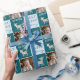 Cute Personalized Baby Photo Reindeer Christmas Wrapping Paper. Make your holiday gifts truly unforgettable with our enchanting personalized wrapping paper. This unique design features a charming grid layout, showcasing your precious baby's photo alongside an adorable whimsical reindeer illustration and festive 'Holly Happy Merry' text. Easily customize it with your child's name. Perfect for baby's first Christmas, family presents, or any special gift.