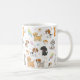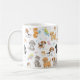 Den här vackra vita keramiska mugg har en glad, över hela mönster av olika söta husdjur av tecknad. Utformningen omfattar lekfulla illustrationer av valpar (inklusive en beagle och en guldfångare), kattungar, pudel, en budgerigar och ett marsvin gris. Det visuella mönster har också små detaljer som tass avtryck, fjärilar och fisk, och skapar det en perfekt gåva till alla djurälskare eller djurentusiaster.