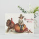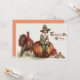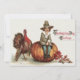 Denna pilgrim har en avslappnande Thanksgiving. Den här Thanksgivingen i vintagen visar en söt liten pilgrimspojke sitta på en pumpkin, en kalkon vid hans sida. Pojken håller gren i Höst löv.