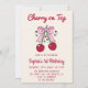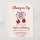 Cute Pink Bow Cherry on Top 1st Birthday Inbjudningar