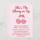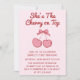 Cute Pink Bow Cherry on Top First Birthday Inbjudningar