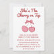 Cute Pink Bow Cherry on Top First Birthday Inbjudningar
