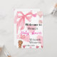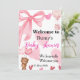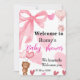 Cute Pink Bow Teddy Bear Shower Welcome Inbjudningar