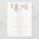 The menu features a sweet watercolor clothesline strung across the top proudly displaying tiny, adorable items, each featuring a cute bunny dressed in pink in a soft watercolor style. The back features the clothesline motif and a soft cloud. Easily add your own details and change the font style, size color and placement if you would like to. This menu is a beautiful detail, inviting your guests to share in the "hoppy" anticipation of your baby girl's arrival!