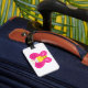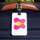 identify your bags easily with these sweet pink butterfly luggage tags featuring a bright and smiling cartoon bug. the vibrant magenta and yellow colors ensure your suitcase stands out at the airport while showcasing a whimsical nature design. durable and fun, these travel accessories are perfect for kids and adults who want to bring a touch of happy garden charm on their next vacation.