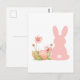 Cute Pink Easter Bunny with Spring Flowers Vykort