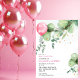 cute Pink eucalyptus Balloon It's Girl Baby Shower Inbjudningar