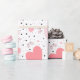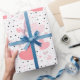 Pattern with cute pink pig with pink hearts and black stars on white background