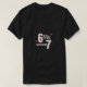 Add a touch of playful charm to your wardrobe with this unique "6 Six 7 Seven" number-themed t-shirt. The design features the numbers six and seven filled with a trendy pink and white plaid (checkered) pattern, beautifully accented with small, cute pink hearts floating around the typography. The combination of bold numerical figures and soft, aesthetic patterns makes this tee a standout choice for casual outings, birthday celebrations, or as a fun gift for someone who loves pastel colors and modern graphic styles. Set against a sleek black fabric, the vibrant pink elements pop with energy and style, ensuring you look effortlessly cool and creative.