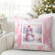 Cute Pink Snowman Christmas Scene Pinkmas Pillow Kudde