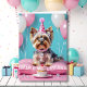 A sweet birthday card for a niece. The front has a cute Yorkie with a pink birthday hat, a cupcake and some diamond and balloons bling. inside is a cute cupcake coloring page and an adorable pun!