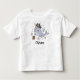 Den här personlig småbarn t-shirt-skjortan har en charmerande och lekfull tecknad med ett vismiskt uttryck, som bär en liten pirat-hatt med en skalle och korsben. Roligt oceanmatade tillbehör som en skattkista, stjärnfisk och flytande bubblor omger snurren.