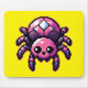 Den här bilden visar en pixelbild av en spindel som återges i en charmerande bild, retro 8-bitars stil. Spindelns kropp är främst rosa, accentuerad med mörkare skuggor och ljusblå högdagrar, skapande en slående kontrast mot dess svarta kontur. Den här pixelbaserade arachniden visar en lekfull men edgy vibe, som påminner om klassiska videospelestetik. Den charmliknande utformningen antyder symbolik som hör samman med tur och skydd, medan färg rosa och svart tillför lagrar av mysterium och komplexitet. Pixelkonsten stil framkallar inte bara nostalgi utan belyser också den komplicerade konst som är involverad i digitala verk.