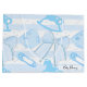 Cute pojke mönster i blått med gungande häst, blöjor baby och en blå nål med elegant blå och vit rand med ljusblå glittrande punkter i bakgrunden. En enkel skrivning i baby namn i två typsnitt. Anpassa genom att ändra texten.