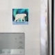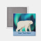 En söt björn (Ursus maritimus), som är gjord i ett primitivt eller naivt stil, går på polarnas is, Auroran Borealis (norra Ljus) ser ljusa ut i bakgrunden. Anpassa genom att lägga till egen text.