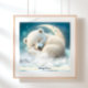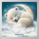 Cute Polar Bear Seping on Måne in Clouds Art Poster