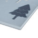 Kudda polar omges av Julgranar och snöflingor mot isblått bakgrund