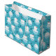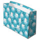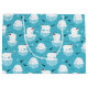 En julklapp med en söt julklapp mönster med en polar som ger isbjörnar som flyter is med röda julhattar. Lilla igloos, snöflingor och fisk runt dessa vackra polar bär kylande på vatten. Ljusblå bakgrund. Utformning av helgdag och finhet.
