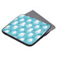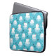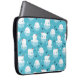 Laptop sleeve med en söt jul i mönster med polar har isbjörnar som flyter sig med röda tomthattar. Lilla igloos, snöflingor och fisk runt dessa vackra polar bär kylande på vatten. Ljusblå bakgrund. Utformning av helgdag och finhet.