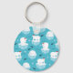 En nyckelkedja med en söt jul i mönster med polar har på att flyta isar med röda tomter. Lilla igloos, snöflingor och fisk runt dessa vackra polar bär kylande på vatten. Ljusblå bakgrund. Utformning av helgdag och finhet.