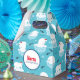 Små 4-tums x 2,5-tumsfack med en söt jul i mönster med polar som står på flytande is med röda tomhatt. Lilla igloos, snöflingor och fisk runt dessa vackra polar bär kylande på vatten. Ljusblå bakgrund. Utformning av helgdag och finhet.