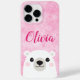 Telefonväska med söt liten polar på rosa och anpassade namn ovan.