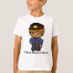 Cute Polispojken i uniform med bricka och baton. För fredsbyrån. Anpassa texten.