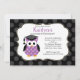 En mycket söt klass av 2013 Kindergarten Studenten eller grundskolan studenten inbjudan med en aptitlig polka lila uggla med en studenten robe och studentmössa på en svart och grått-polka prickad bakgrund med en matchande bakgrund. Anpassa med din party-information så är du redo att gå! Matchande tackkort, klistermärken och porto finns i vår butik på www.celebrateitinvites.com ©JW Illustrations