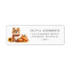 En god returadressetikett med en Pommern-hund som bär en scarf och omgiven av pumpor.