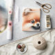 En flytande Pommern-hund med en sjudande orange och vit jacka, med stort, uttrycksfullt ögon och ett glatt uttryck. Den står mitt bland mjuka, pastellblommor och mjuk färgad stänk och skapar en varm och inbjudande atmosfär. Bakgrunden är ljus och luft, vilket förbättrar hund fluffa päls och lekande beteende.