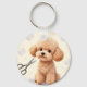 Cute Poodle Grooming Bubbles Scissors Nyckelring