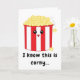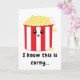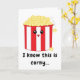 Den här designen har en söt tecknad popcorn på ett födelsedagskort.