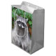 Glamorize dina presenter med den här storleka presentsäcken med grått trim som har en fotobild av en söt, utklädd, skog Raccoon. Välj din presentväska stil.
