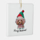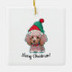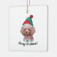 En söt, ljusbrun pudel med en röd julhatt, på utsmyckningens framsida är ord "God jul!". Både bilden och texten är platshållare - du kan enkelt ersätta bilden med en bild av ditt eget husdjur, och du kan också enkelt ändra ord. Designen skapades med AI. Perfekt gåva till alla som kärlek pudel eller vill till ge som en gåva till en vän som älskar pudel.
