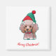 En vit, brinnande liten, söt, liten pudel med röd och grönt julhatt, tillsammans med ord "God jul!". Designen skapades med AI. Du kan enkelt anpassa den här söta magneten genom att byta ut ord mot ord efter eget val.